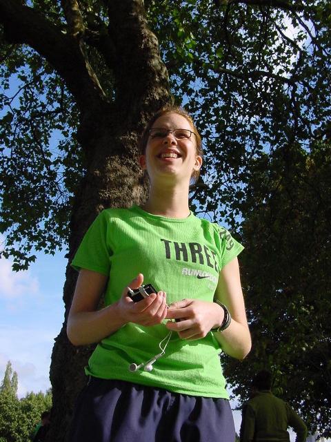 Caroline – getting set for her ‘challenge’ complete with i-Pod